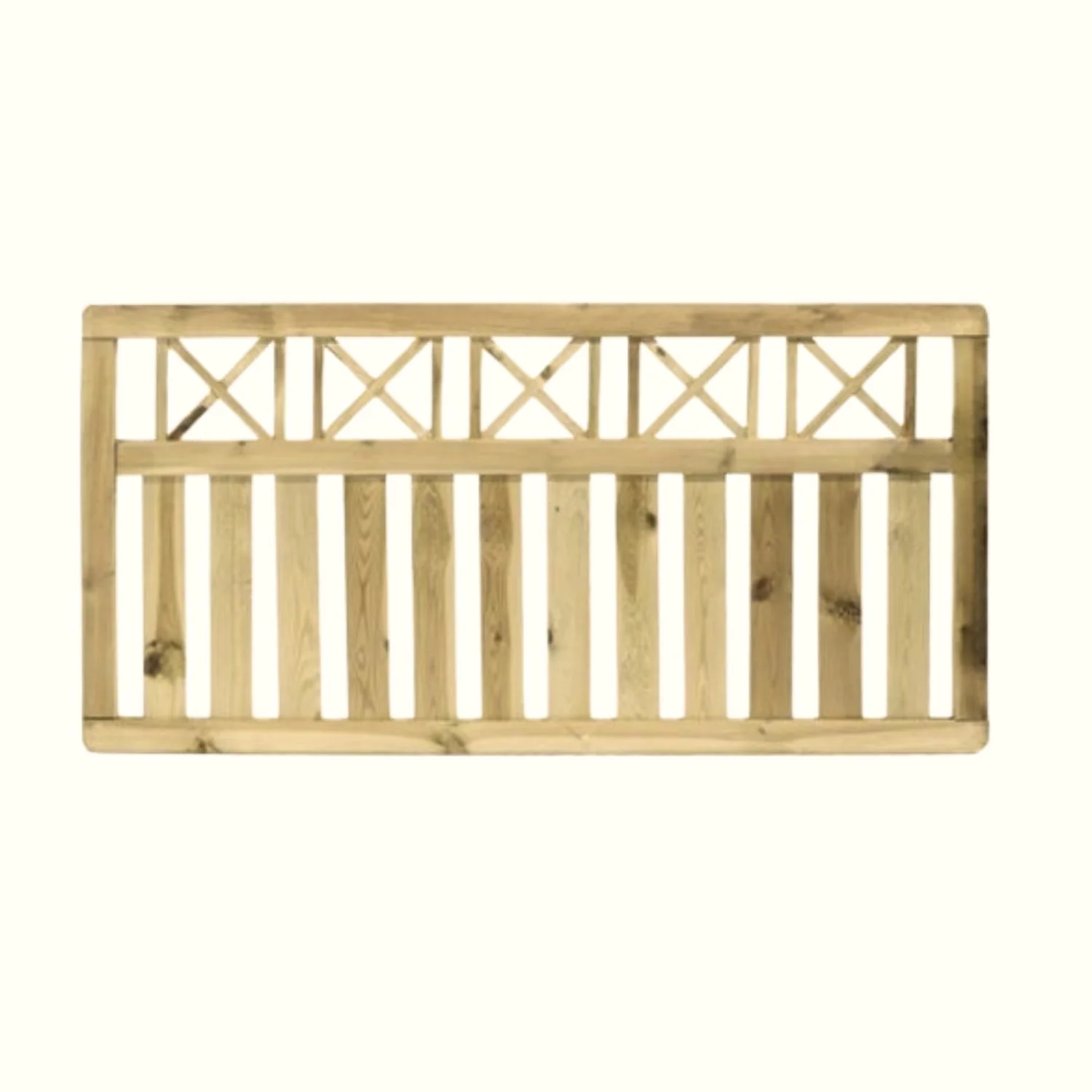 The Elite Cross Top Border Fence Panel builds on the traditional cross top border design with a more defined framework and decorative boxed cross pattern at the top. Ideal for garden borders, pathways, and decking areas, this panel provides gentle separation while allowing light and airflow through the structure. Manufactured from smooth planed timber, it offers a refined finish suited to both modern and traditional garden layouts.